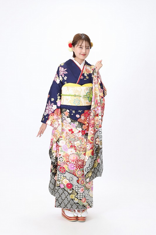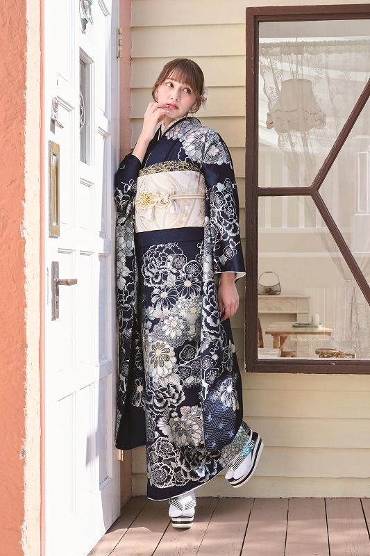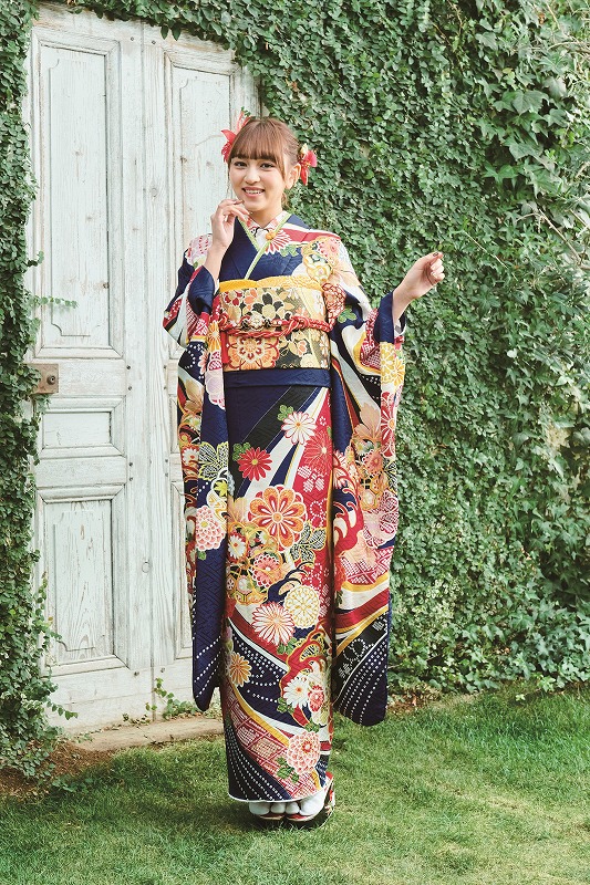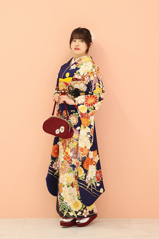 紺は肌を明るく、振袖の柄をくっきり見せてくれるため写真映え抜群です。