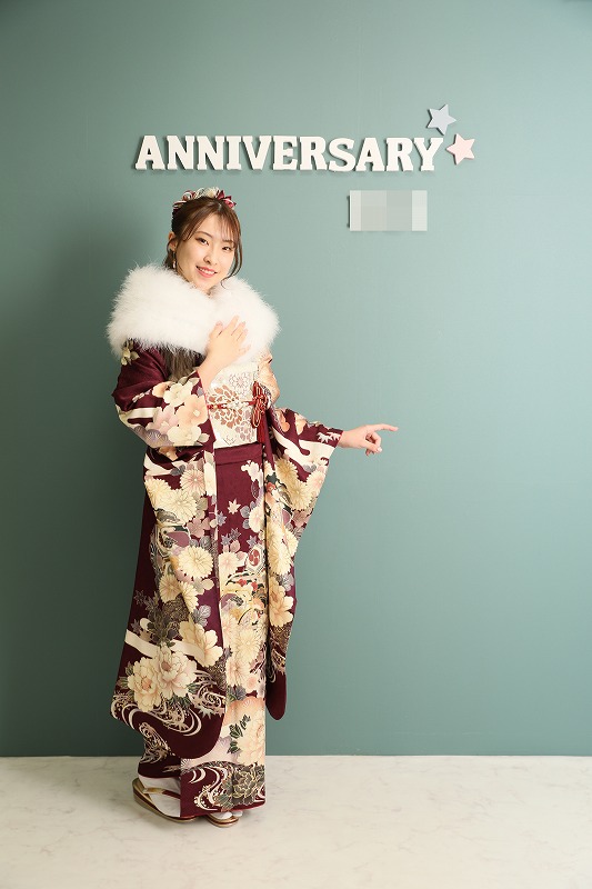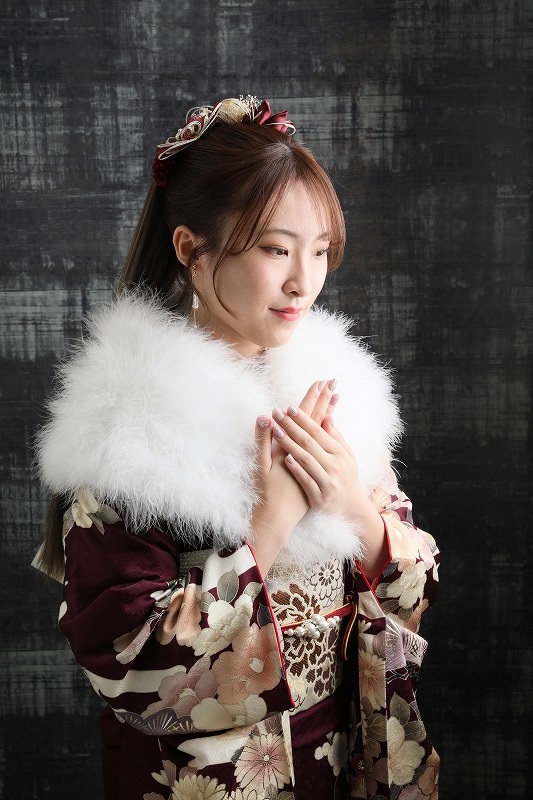 えんじ色の振袖です(^^)/