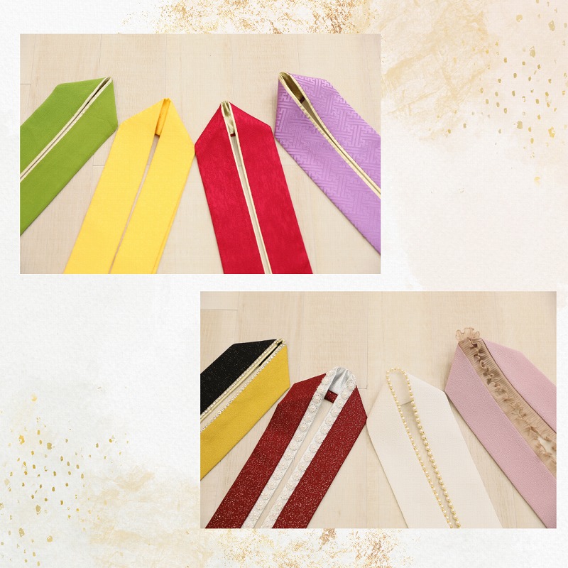 白地やカラー地など豊富な種類があります。お母様の振袖の色味に合わせて選ぶと、全体のバランスが整い、より洗練された着こなしが叶います。