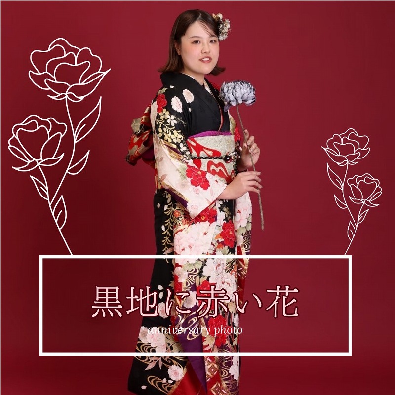 黒に赤の牡丹柄が入ったかっこいい振袖!