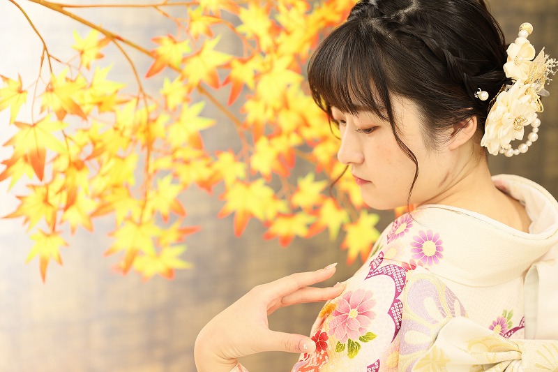 ヘアアレンジも編み込みを入れてまとめ髪に