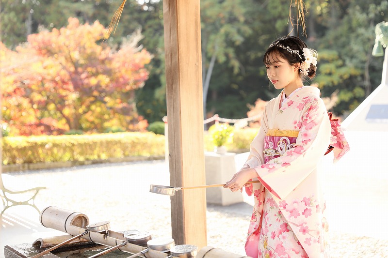 帯にもピンクを入れたお嬢様らしいコーディネート!