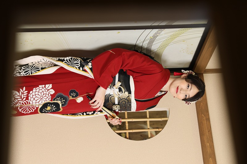 髪飾りやネイルも赤と黒で合わせてくださり、