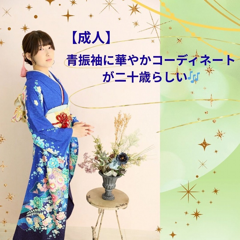 青振袖に華やかなコーディネートをしてくださったお嬢様です!