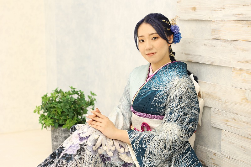 大人っぽい振袖を着てくださったお嬢様です(^^)