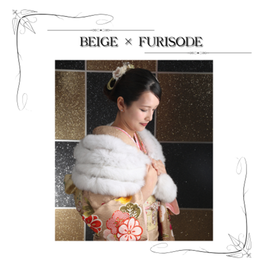 ベージュの大人っぽい振袖を着てくださったお嬢様です!