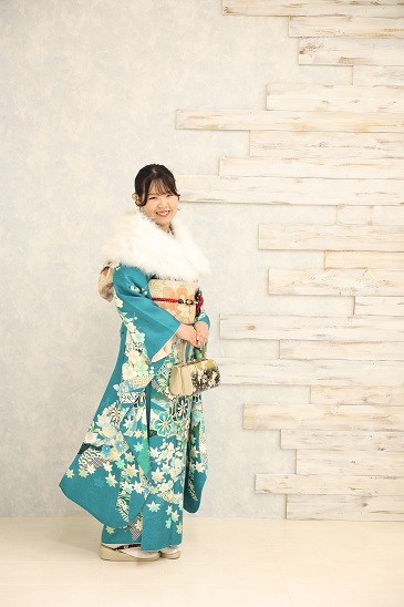 青系の振袖も色の幅が広く、淡い水色から青、