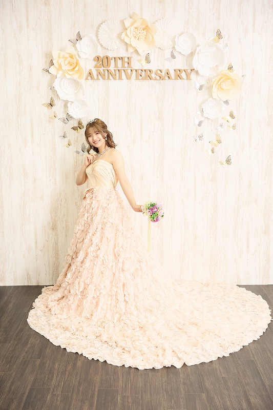 可愛い淡いピンクのドレスで、やわらかい雰囲気に♪