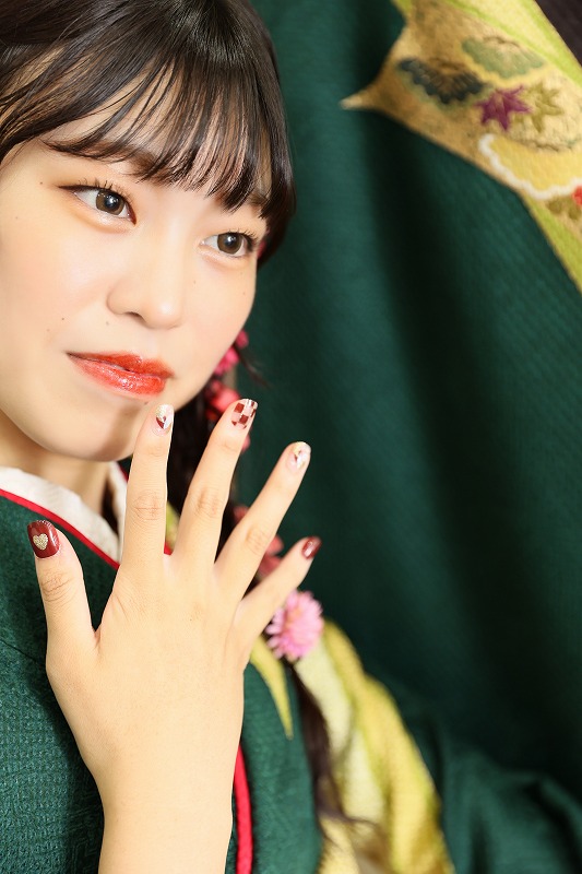 ネイルも赤を入れて小物と合わせてくださり、