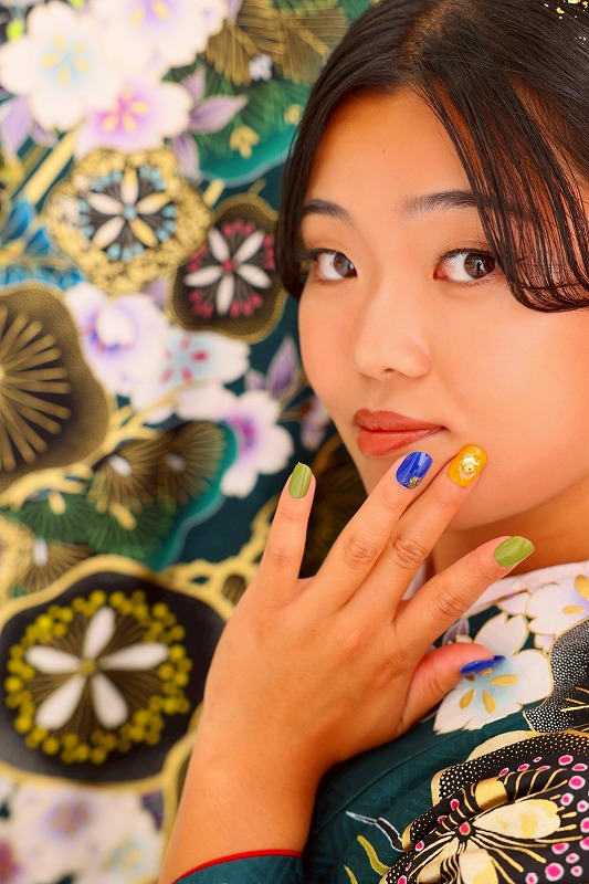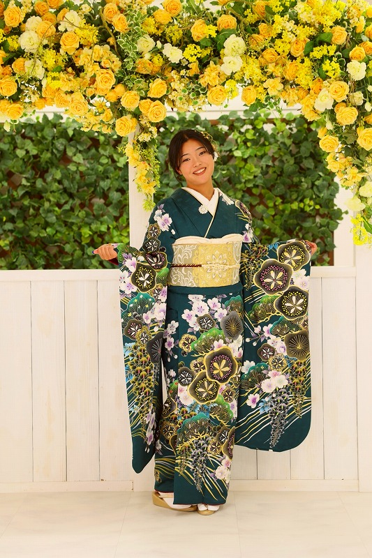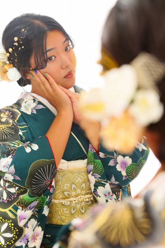 緑のかっこいい振袖がどの背景にもマッチしていました♡