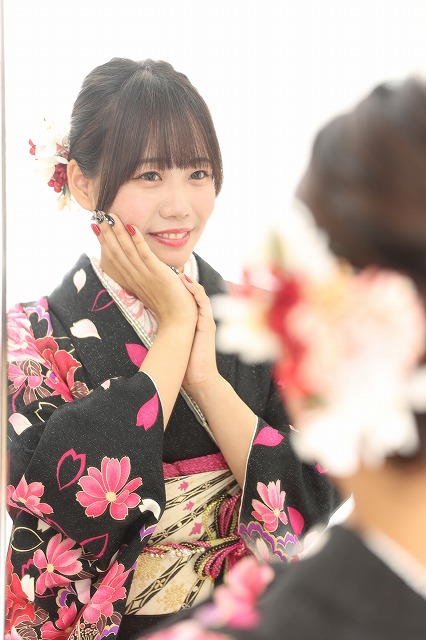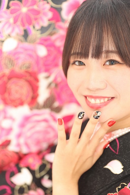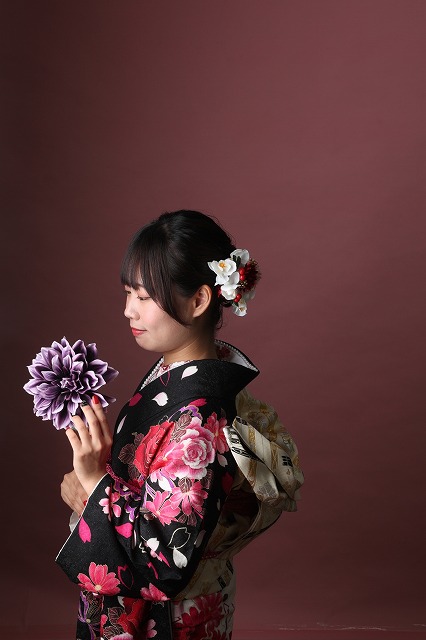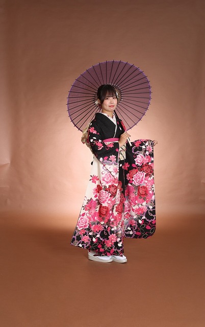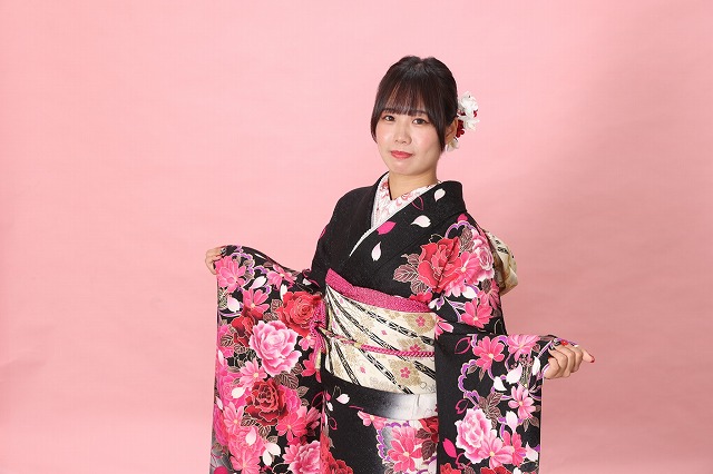 選んでくださったのは、黒地にバラ柄の洋風振袖!
