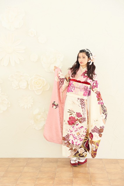 派手すぎず、それでいて華やか!やわらかな色合いや優しい柄が、着る人を明るく、そして清楚に見せてくれます。また、成人式や記念撮影などの場では、写真映えするのも嬉しいポイント。光の当たり方で振袖の色味や質感がふんわりと映え、思い出に残る一枚に仕上がります。