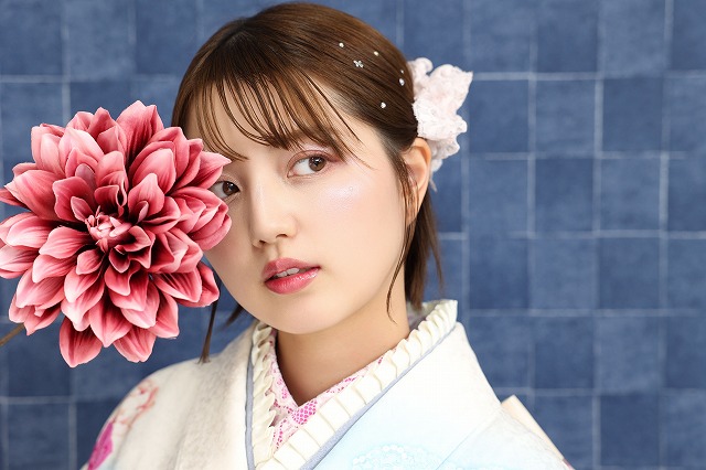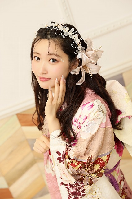 全体をナチュラルにまとめることで、振袖と調和し、写真映えも抜群です。あなたらしい“可愛い”を髪とメイクで表現して、特別な日をとびきり華やかに過ごしてください!
