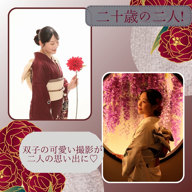 お嬢様は深い赤のえんじ振袖を着てくださいました!