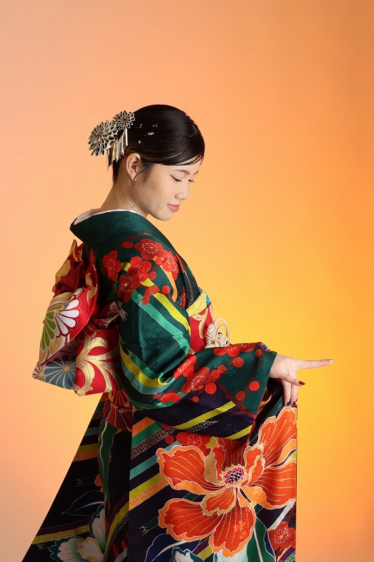 帯や帯揚げ、重ね衿にははっきりした色を入れて