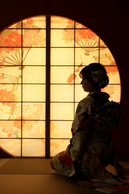和テイストの背景と、正座での姿も素敵!
