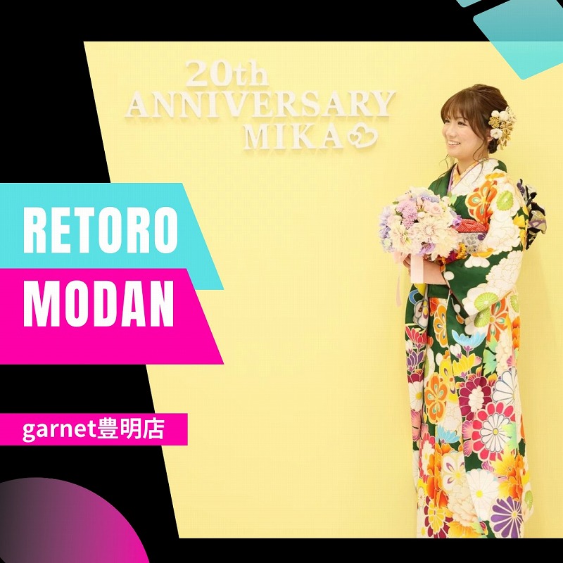 この記事では、レトロモダン柄の振袖を