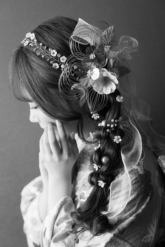 髪飾りが華やかだからこそ、こうした写真も雰囲気が出ますね♡