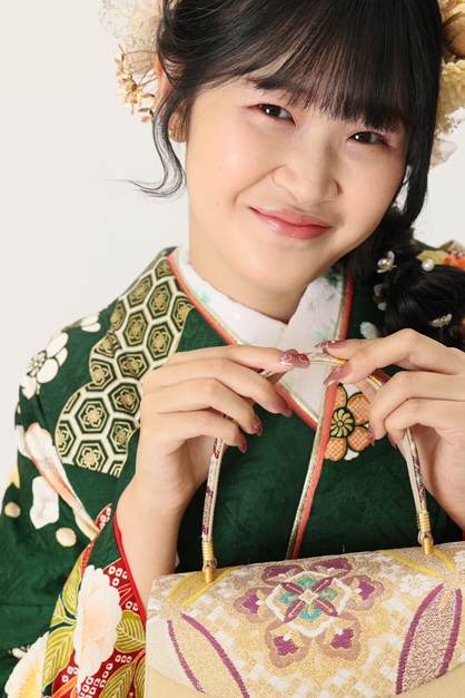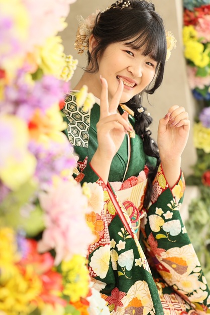 緑の振袖は落ち着いた雰囲気になる印象ですが