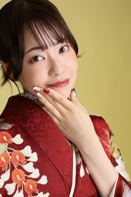→ 振袖と調和して華やかに。深みのあるレッドやボルドーなら大人っぽく。