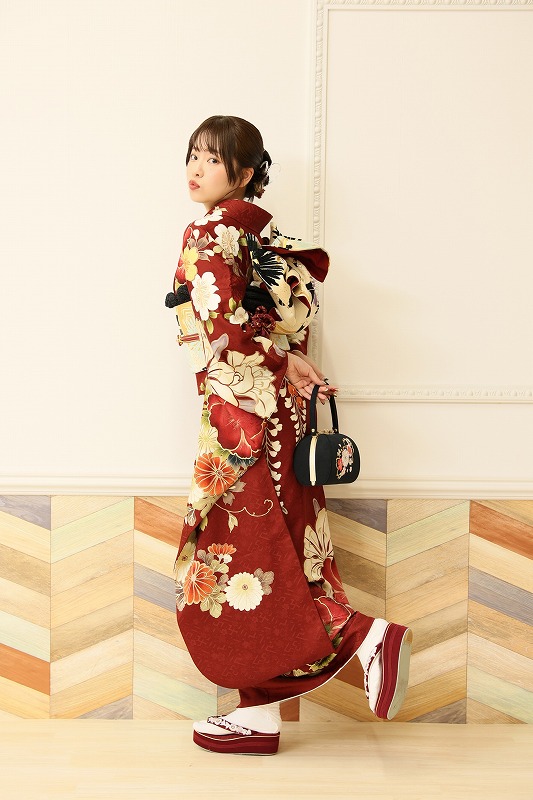 赤の振袖には華やかで明るいイメージがあるので、お祝いの成人式にピッタリの色です。