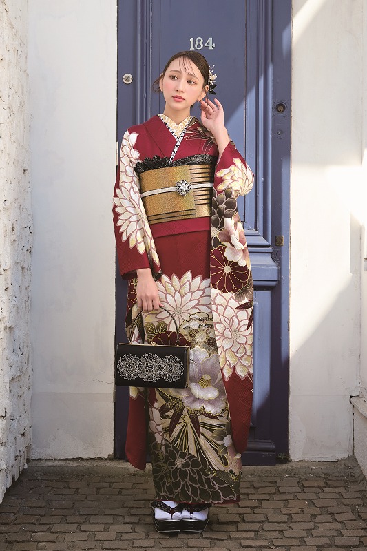 赤は 若さ・情熱・生命力 を表す色で、20歳の門出にふさわしい明るさと力強さを演出します。振袖の華やかさを最大限に引き立てる色でもあります。