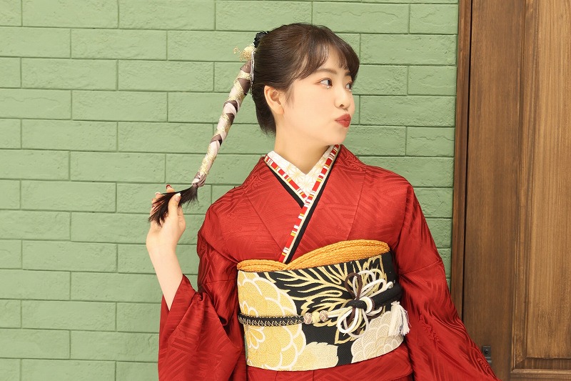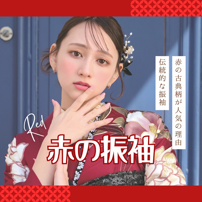 成人式は記念写真を撮る機会が多いですが、赤はカメラ映えしやすく、振袖姿がより美しく残ります。さらに会場でも人目を引きやすいという利点があります。
