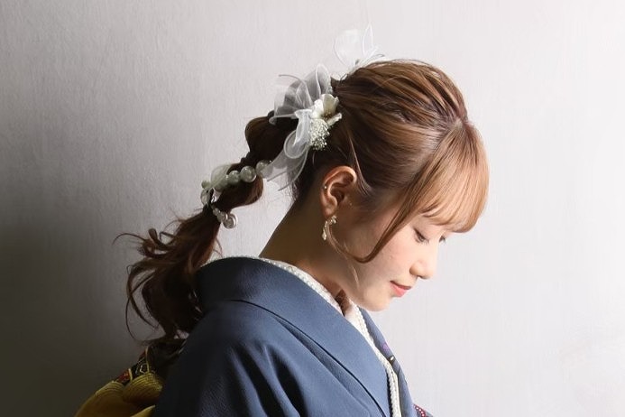 リボンの髪飾りは、可愛さ・上品さ・個性をすべて叶えてくれる万能アイテム。素材やアレンジの工夫次第で、伝統的な振袖スタイルにも現代的な華やかさをプラスできます。
