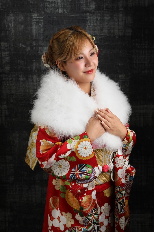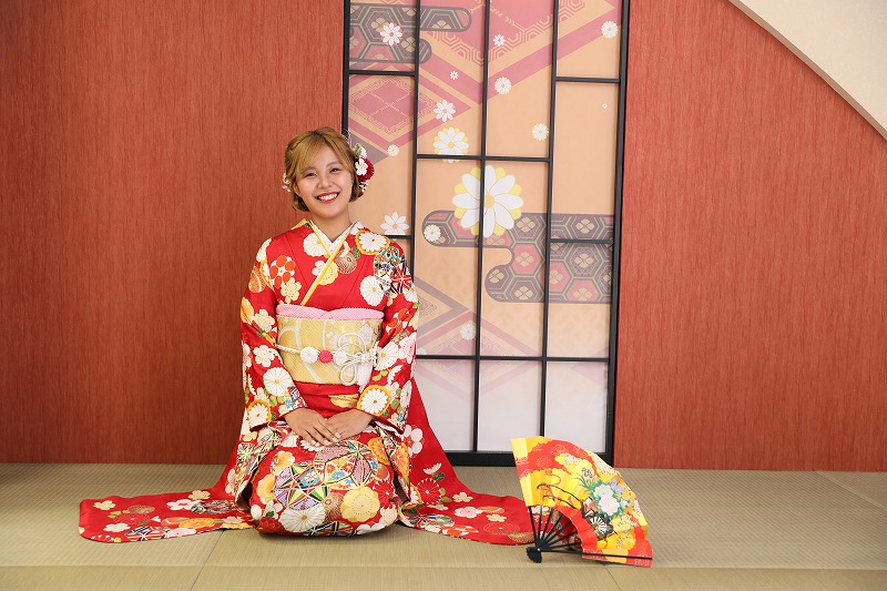 明るいお嬢様にもぴったりの赤い振袖で