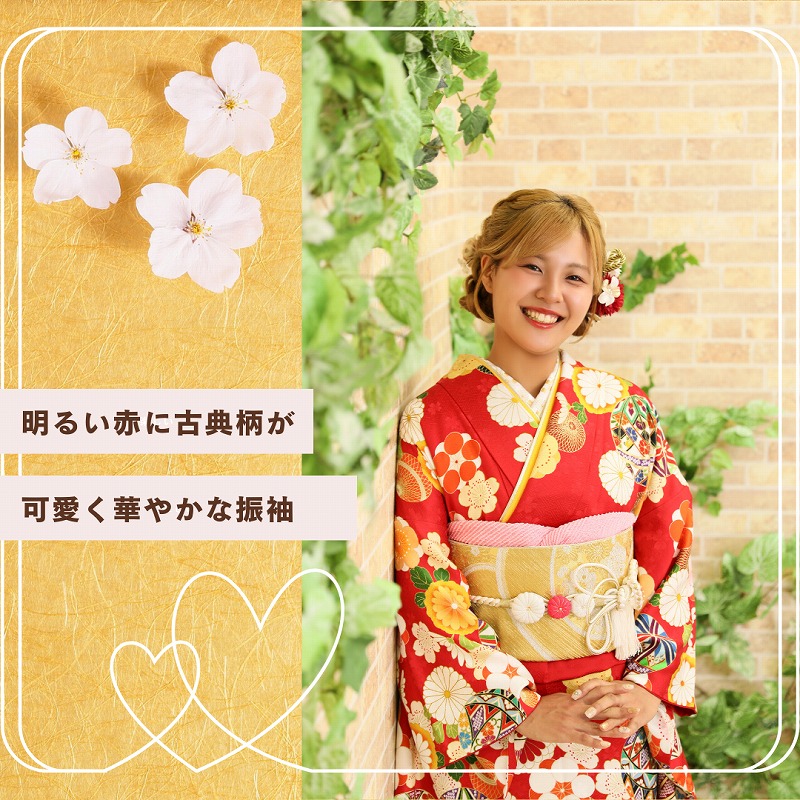 この記事では、赤の古典柄振袖を
