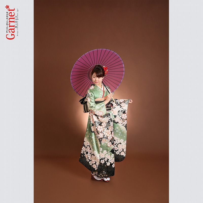 お母様の緑の振袖に猫の帯で撮影して下さったお客様のご紹介をさせて頂きます( *´艸`)