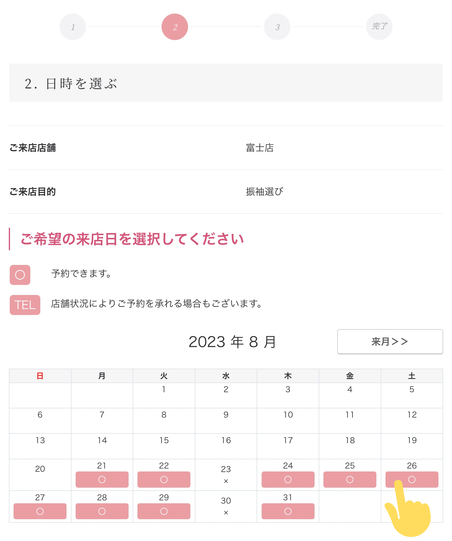 ④ご来店希望日を選択