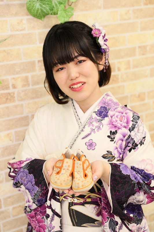 撮影に、幼い頃に履いていた小さな可愛い靴を