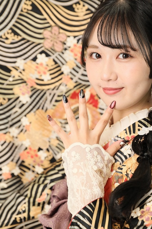 ネイルも振袖の赤と黒に合わせてくださり