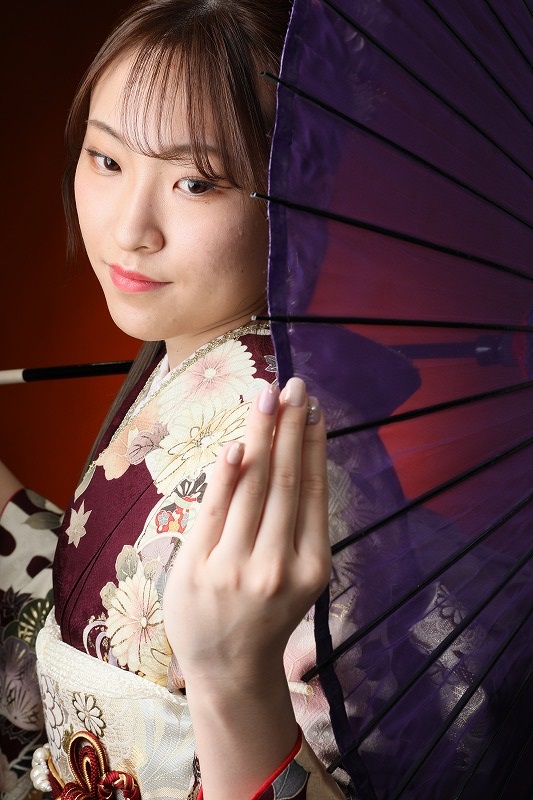 えんじ色の振袖です(^^)/