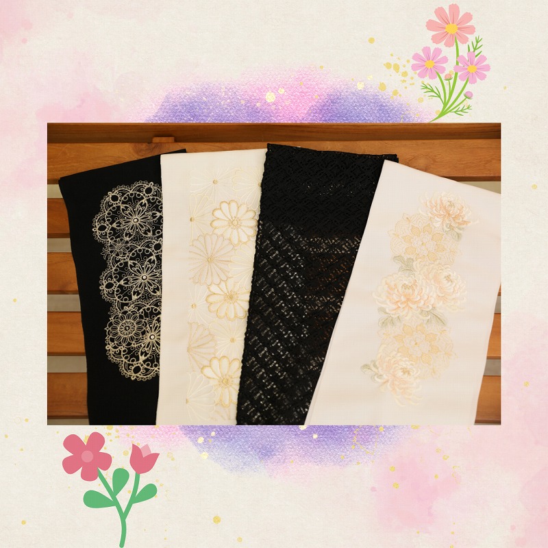 白地やカラー地など豊富な種類があります。お母様の振袖の色味に合わせて選ぶと、全体のバランスが整い、より洗練された着こなしが叶います。