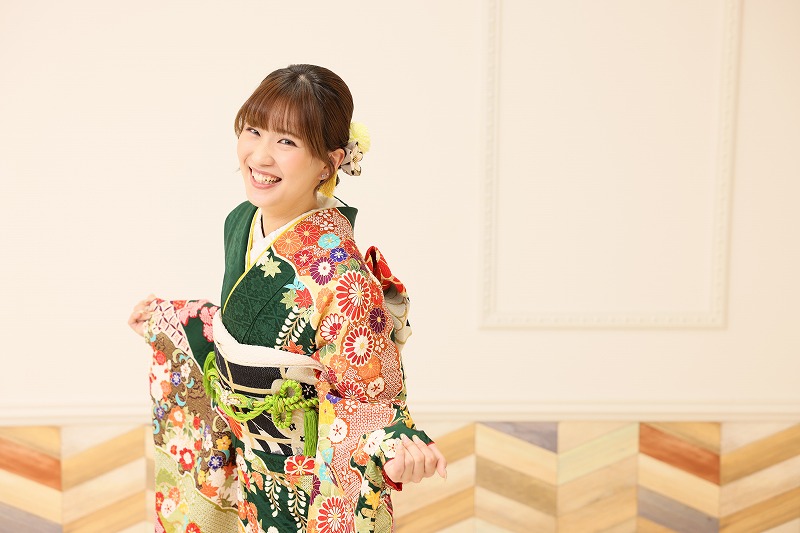 緑の振袖は若々しく可愛い雰囲気になりました♪