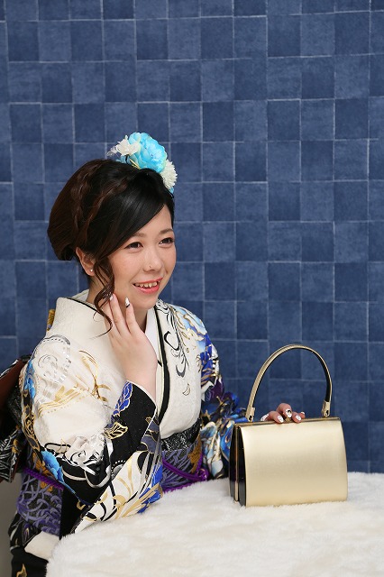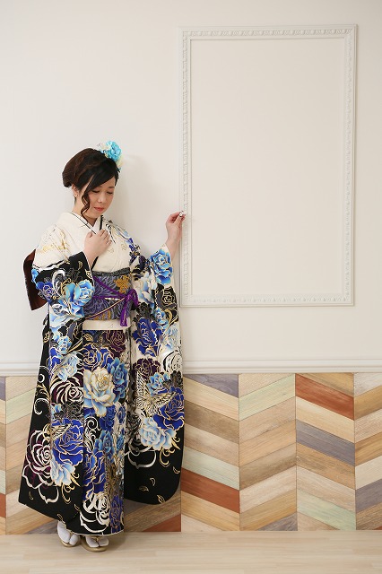 振袖も青の花柄が大胆に入っていて豪華なコーディネートですね★