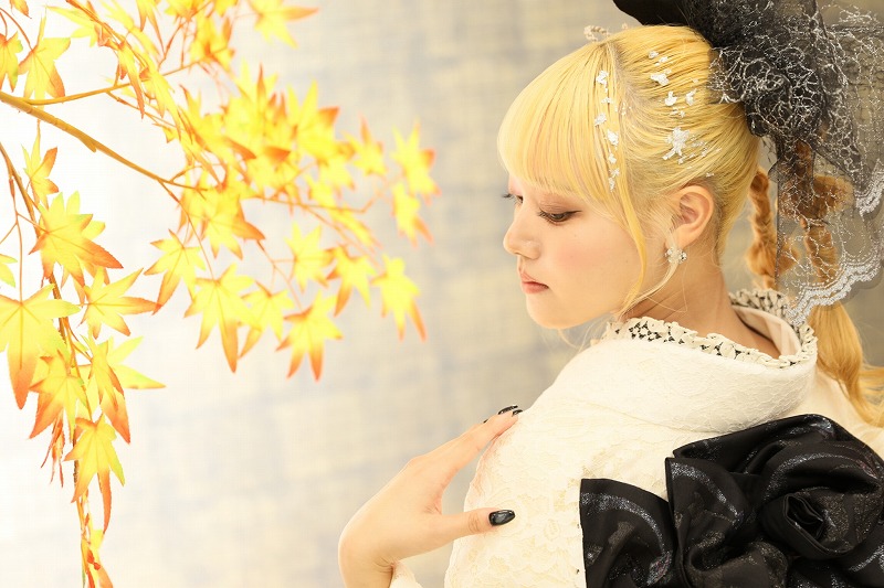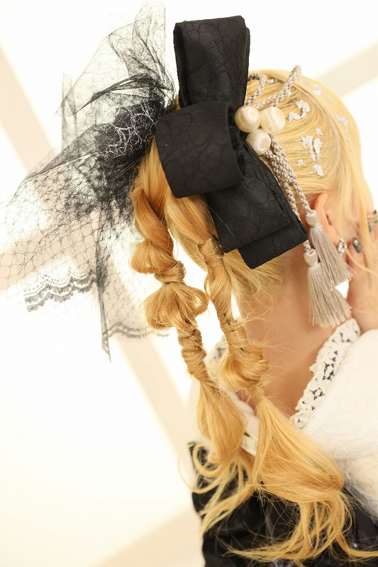 髪飾りも大きく、リボンとレースの存在感がある物を