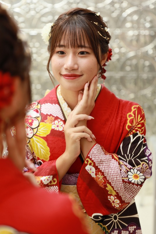 リップも濃い赤で振袖に負けない映えメイク!