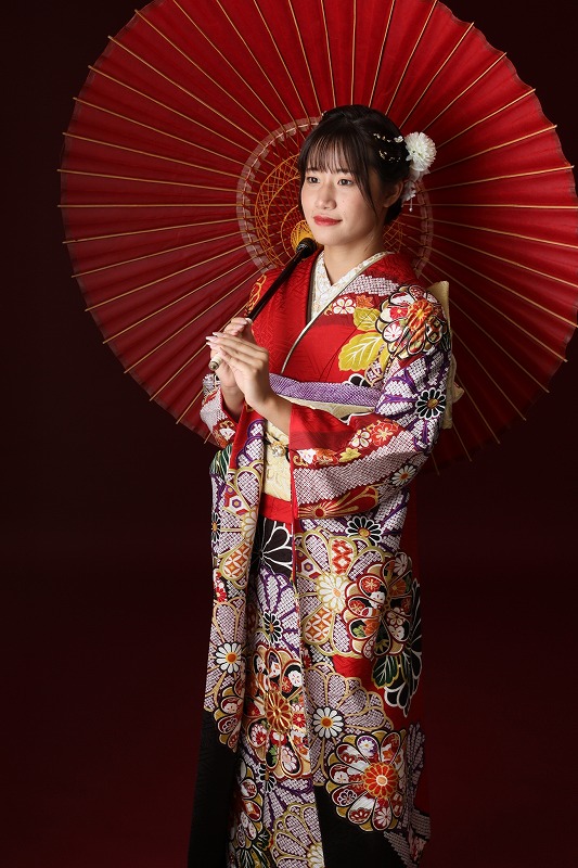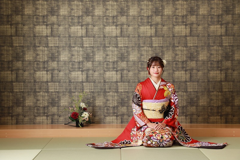 この記事で紹介するのは、赤の華やかな振袖を