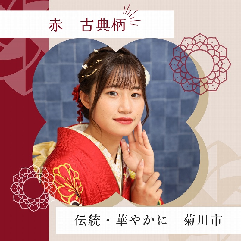鮮やかな赤に華やかな古典柄の振袖!
