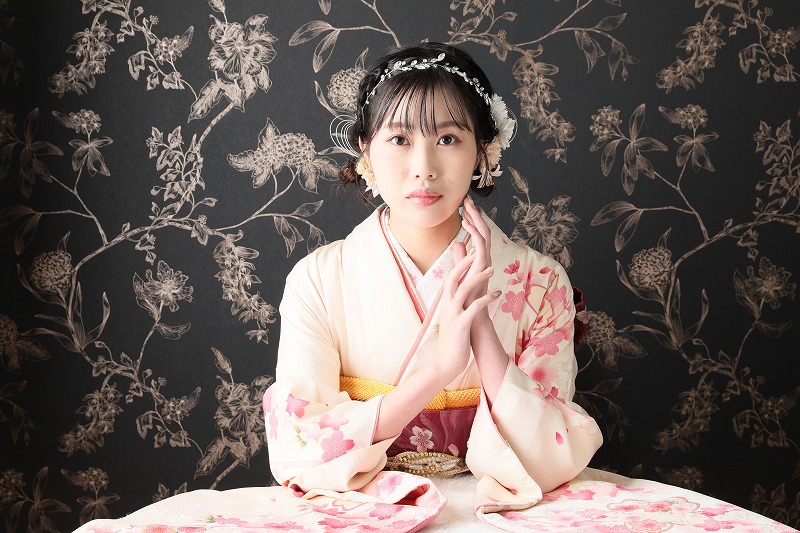 帯にもピンクを入れたお嬢様らしいコーディネート!
