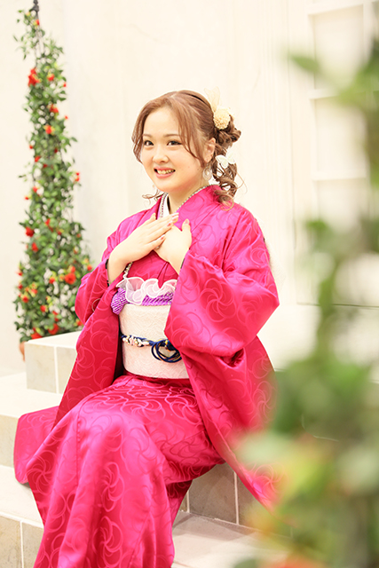 振袖全体が鮮やかな濃いピンクでとても華やかな