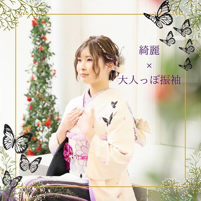 この記事では、白地に蝶柄が綺麗な振袖を