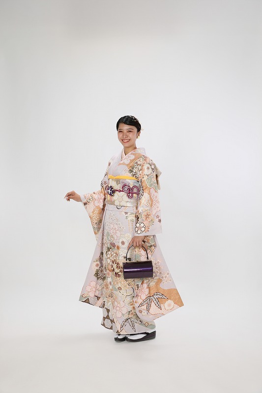 淡い紫色のやわらかい印象になる古典柄の振袖♡