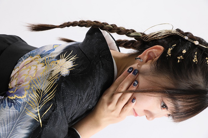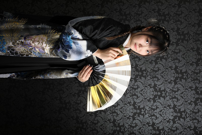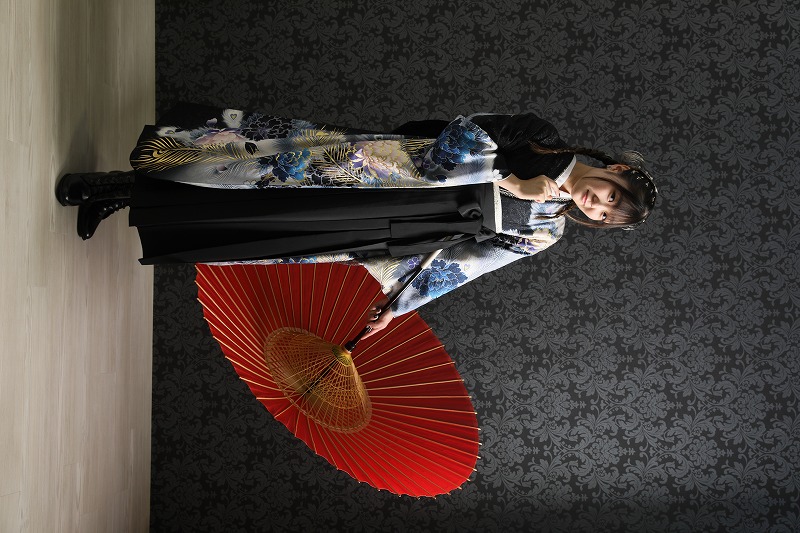 お嬢様が着てくださったのは黒の振袖に、黒の袴!