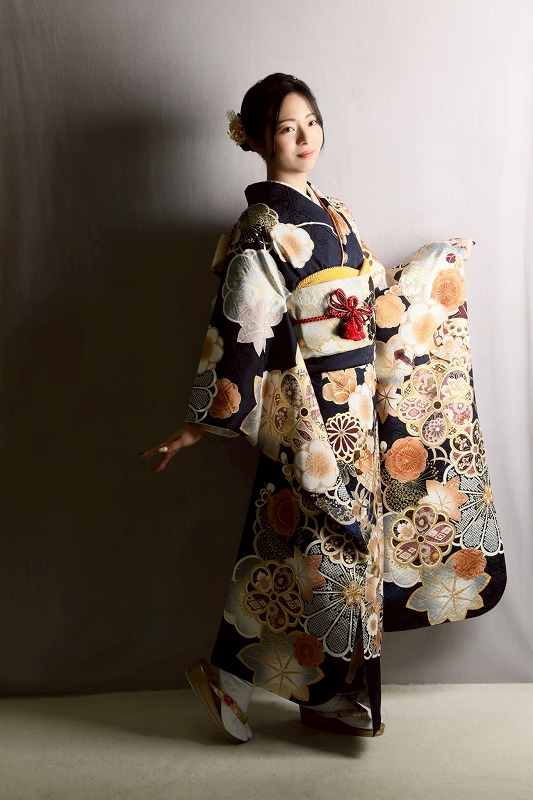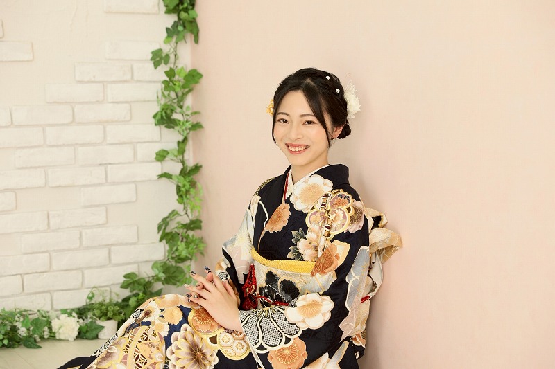 濃い紺地の振袖を着てくださったお嬢様です♡