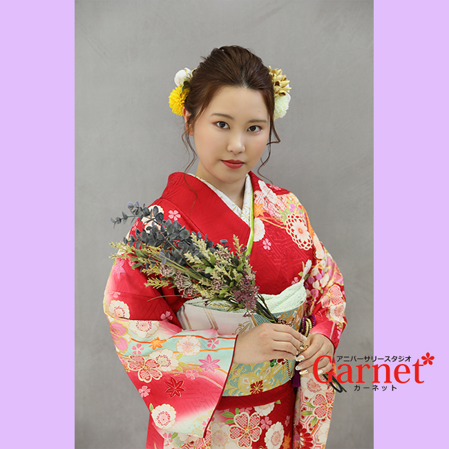 成人式、振袖選び、前撮りはガーネットに