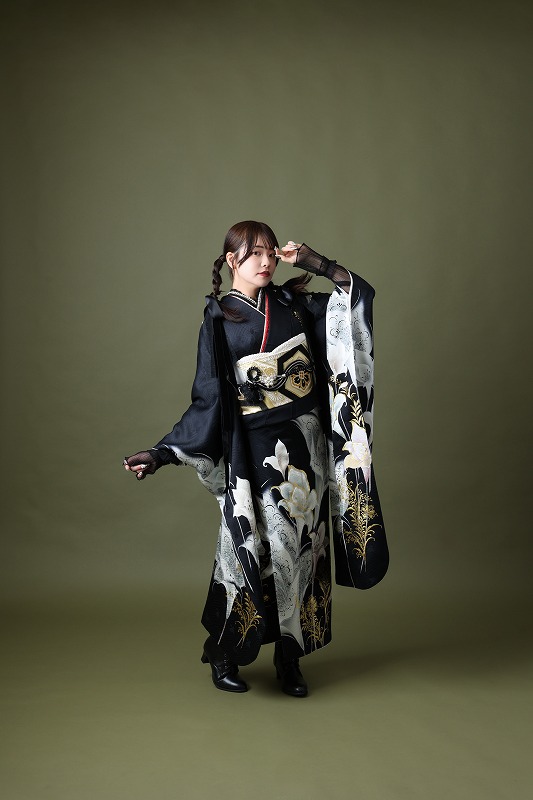 黒色の振袖は細く見せることを目指すならイメージする方が 多い色かと思います。
